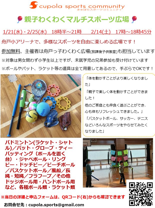 舟戸小 親子わくわくマルチスポーツ広場のお知らせ