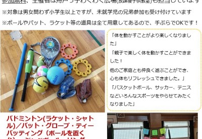 舟戸小 親子わくわくマルチスポーツ広場のお知らせ