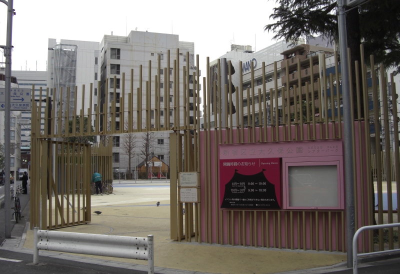 先日は気になることがあって新宿区の大久保公園を見に行ってきました! 入り口を入って手前半分は広場(まわりにベンチもある)、 奥半分はバスケ&フットサルコートです。 バスケ&フットサルコートというと、おやと思われるで