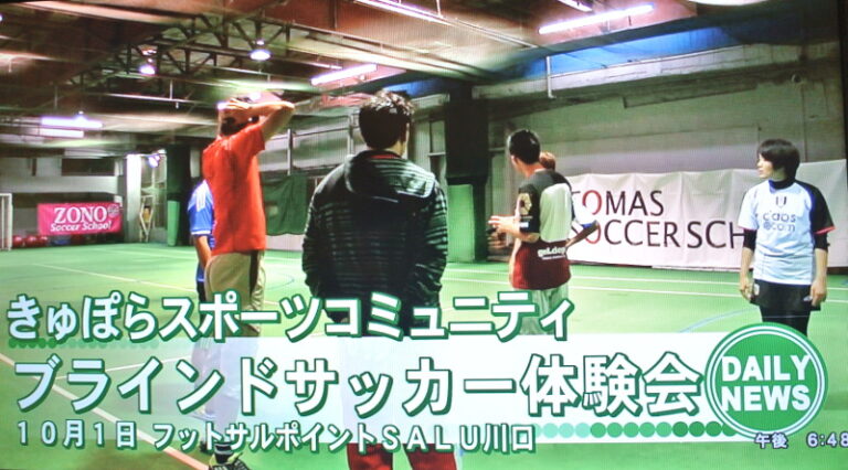 本日10/2(木)にJCOM川口戸田内のデイリーニュースにて、10/1(水)に行われたブラインドサッカー体験の様子が取り上げられました! 今後もブラインドサッカーのような、スポーツ×ソーシャルな活動に継続して取り組んでい
