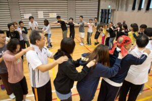 中には町会や学校の運動会に参加されている方もいらっしゃるかもしれませんが、ここでしかできないオリジナル種目(障害物リレーなど)もたくさん用意しております。最後にはジェンカなどフォークダンスも行います。