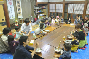 1/8(祝)14時~親子で麺棒とボウルを使ったミニ餅つきとお正月遊びをしよう! 【親子でミニ餅つき&お正月遊び】は毎年1月に開催しておりますが、これまで下記のような皆さんに楽しんでいただきました! ✔親子で一緒に楽しみたい ✔子供にいろいろな体験をさせたい ✔子供向けのイベントを探していた ✔家や家族だけではできない体験がしたかった ✔食べるだけでなく、つく経験をさせたかった(つきたての餅を食べる経験もしたかった) めん棒と、ボウルを使って、ミニ餅つきを楽しみましょう!! 身近なものを使ってのお正月遊びもご用意しております。 【今年のお正月遊び】は・・・ ①かんたんたこあげ ②ブンブンごま ③牛乳パック・紙コップでコマまわし ④羽根つき を予定しております。 天候が良ければ戸外で、その他の場合でも、室内で作って遊べるスペースを設けたいと思います。 ※小さなお友達でも、楽しめる内容です。 ↓↓これまでに参加された皆さんの感想です↓↓ 「もち米から餅になっていく様子を見ながら自分で「つく」経験ができた。切り餅よりもはるかに柔らかくて美味しい!貴重な体験をさせていただきありがとうございました」 「子供が一生懸命、餅をつくところがとてもかわいかったです」 「家でなかなかできない餅つきができてよかった。すぐ飽きてしまうかと思いましたが、最後まで自分でやると頑張れてよかった」 「ほとんどの子どもがぺったんぺったん頑張って、餅が完成したので喜びも大きかったようです」 「おもちをおいしいと食べていて驚きました。普段は食べないのですが自分で作ると食べるんですね!」 「前回より上手に餅つきできてよかったです」 「お餅を綿棒で作る作業を子どもが楽しそうにがんばっていたのがよかったです」 「おもちをついたり丸めたり子どもも楽しそうでした。また2歳なので楽しめるかわからなかったのですが、とても喜んでいたのでよかったです。」 みなさん、ぜひ遊びにきてください!! ※対象は年少以上とさせていただいておりますが、年少未満のお子さんとの参加や大人のみの参加は、お問い合わせください。 ★日時(予定) 1月8日(祝)14時(集合13時50分) 終了予定:16時 ★場所 飯塚氷川神社(社務所) (埼玉県川口市飯塚1丁目7、川口駅西口徒歩10分) ※最下部に地図があります ★参加費 1家族1000円 ※セット内容・・・もち米茶椀1杯・アンコ・きな粉・大根おろし・海苔 (追加1セットにつき+500円) 他会場費等 参加ご希望の方は、何セット必要かお知らせください ★参加申し込み&キャンセル期限 参加される方は、cupola.sports@gmail.com (担当:石井)までご連絡ください。 *あそつくのイベントに初めて参加される方は、簡単な自己紹介(お子様のお名前と年齢を必ずお知らせ下さい。)も添えていただければと思います。(どのような経緯でこの活動を知ったかもお知らせいただけますと幸いです) 材料調達の都合上1月5日(金)までとさせていただきます。(それ以降のキャンセルにつきましては、材料費実費をご負担していただきますので、ご了承ください) ★当日の持ち物 めん棒・ステンレス製ボウル・手拭きタオル・エプロン(汚れてもいい服装)・お子さまの飲み物(お茶はご用意します)・タッパー(お持ち帰り用) ※駐車場について 境内には1〜2台停められますが、基本お車でいらっしゃる方は近くのコインパーキングをご利用頂きますようにお願い致します。 但し特別の事情がおありの場合はご相談下さい。 みんなで楽しい時間を過ごしましょう。 宜しくお願いします(*^^*) 主催:きゅぽらスポーツコミュニティ *このイベントで保険には加入しておりません。スタッフも十分に注意しますが、イベント中のケガ、事故等につきましては一切の責任を負えませんのであらかじめご了承下さい。 ※地図(住所:川口市飯塚1丁目7)