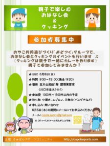 あそつくの3回目の企画として、6/8の午前中に「親子で楽しもう!おはなし会&クッキング」を行います。