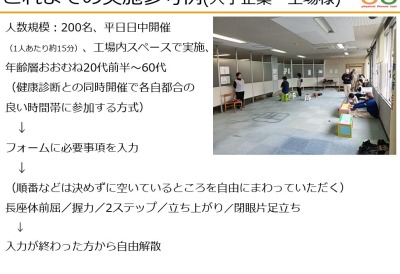 大人の体力測定イベント(体力テスト・スポーツテスト)の実施を代行します!~体力年齢を含む評価レポートつき・年齢性別問わず楽しめる健康経営イベントにも最適です~