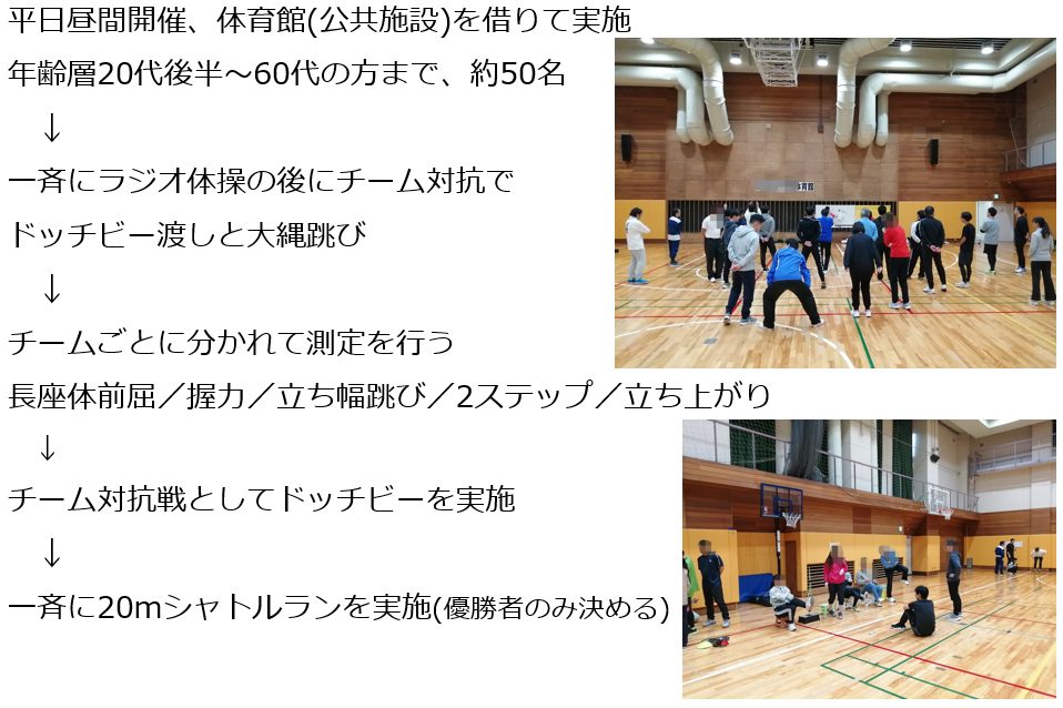 大人の体力測定イベント(体力テスト・スポーツテスト)の実施を代行します!~体力年齢を含む評価レポートつき・年齢性別問わず楽しめる健康経営イベントにも最適です~